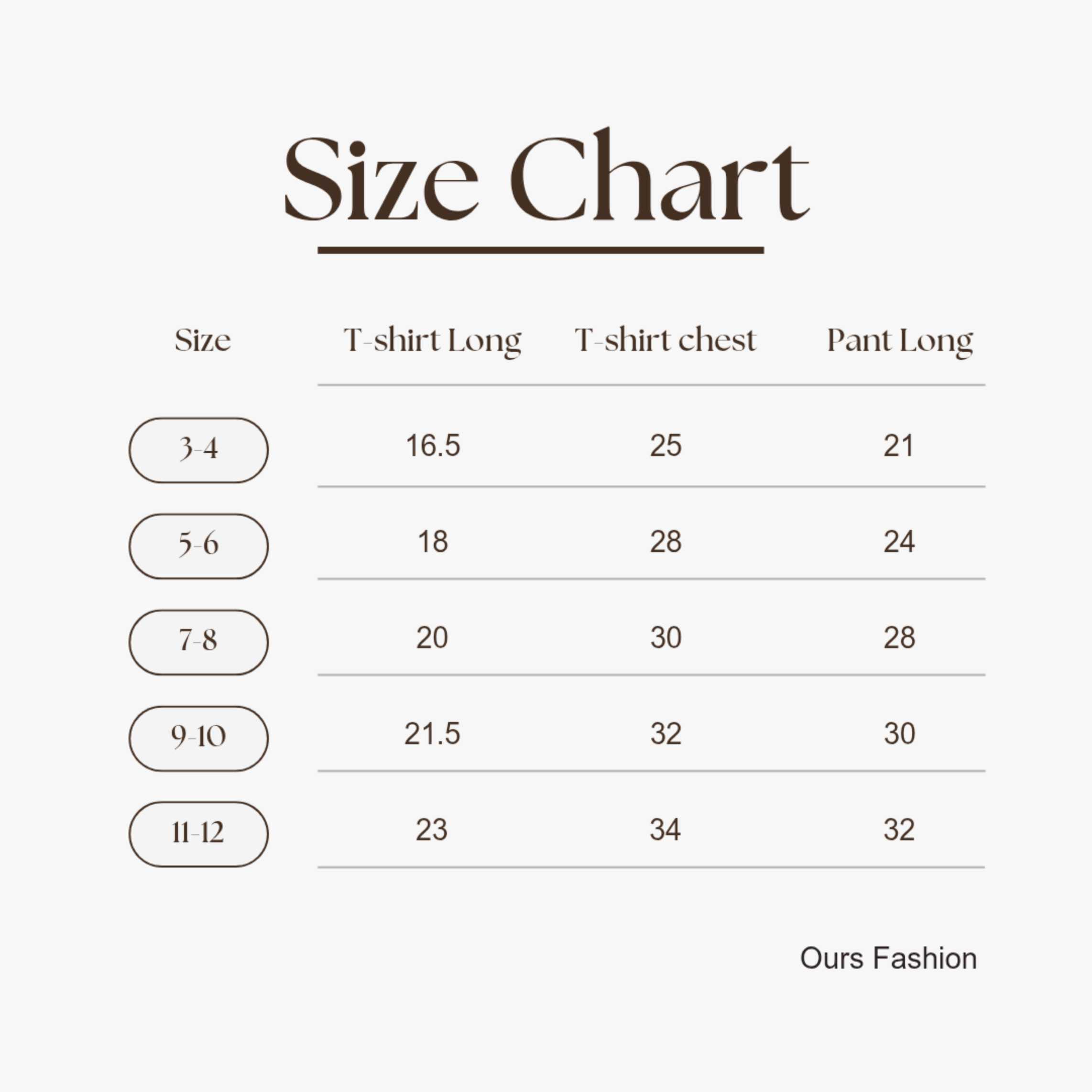 size chart :