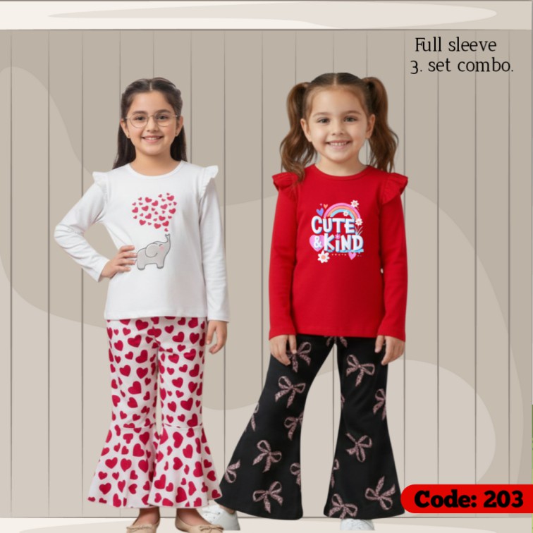 [3] full sleeve T-shirt pant combo sets in three designs,