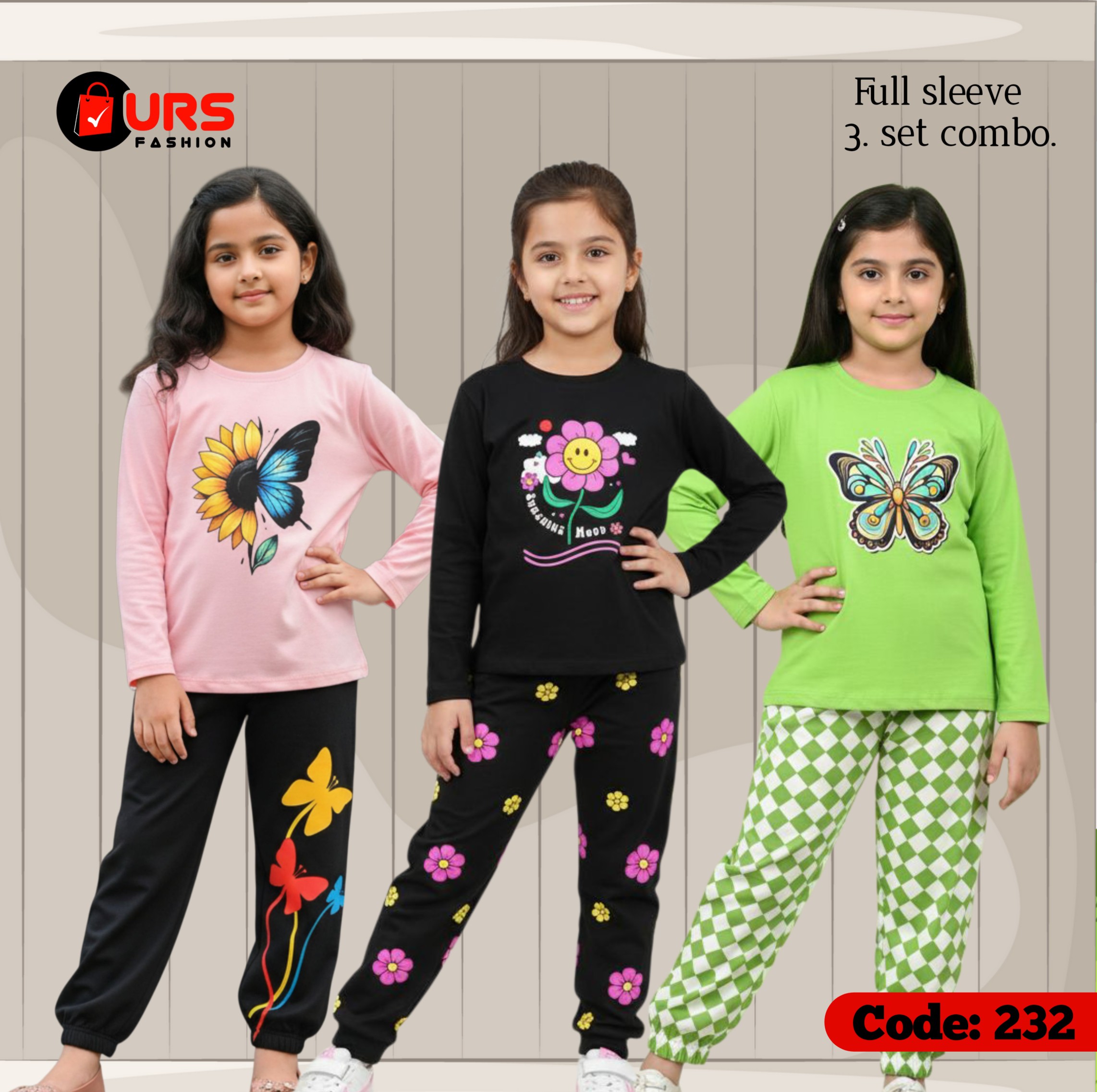 [3] full sleeve T-shirt pant combo sets in three designs,