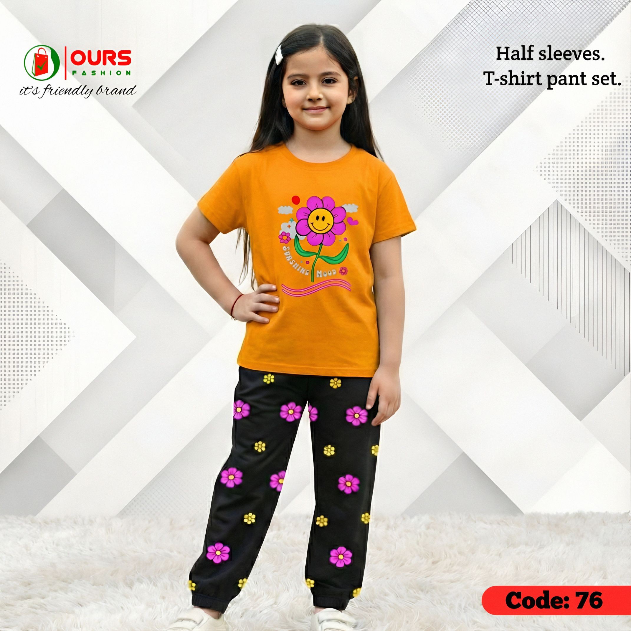 flower Raglan Sleeve design half sleeve t-shirt pant set.