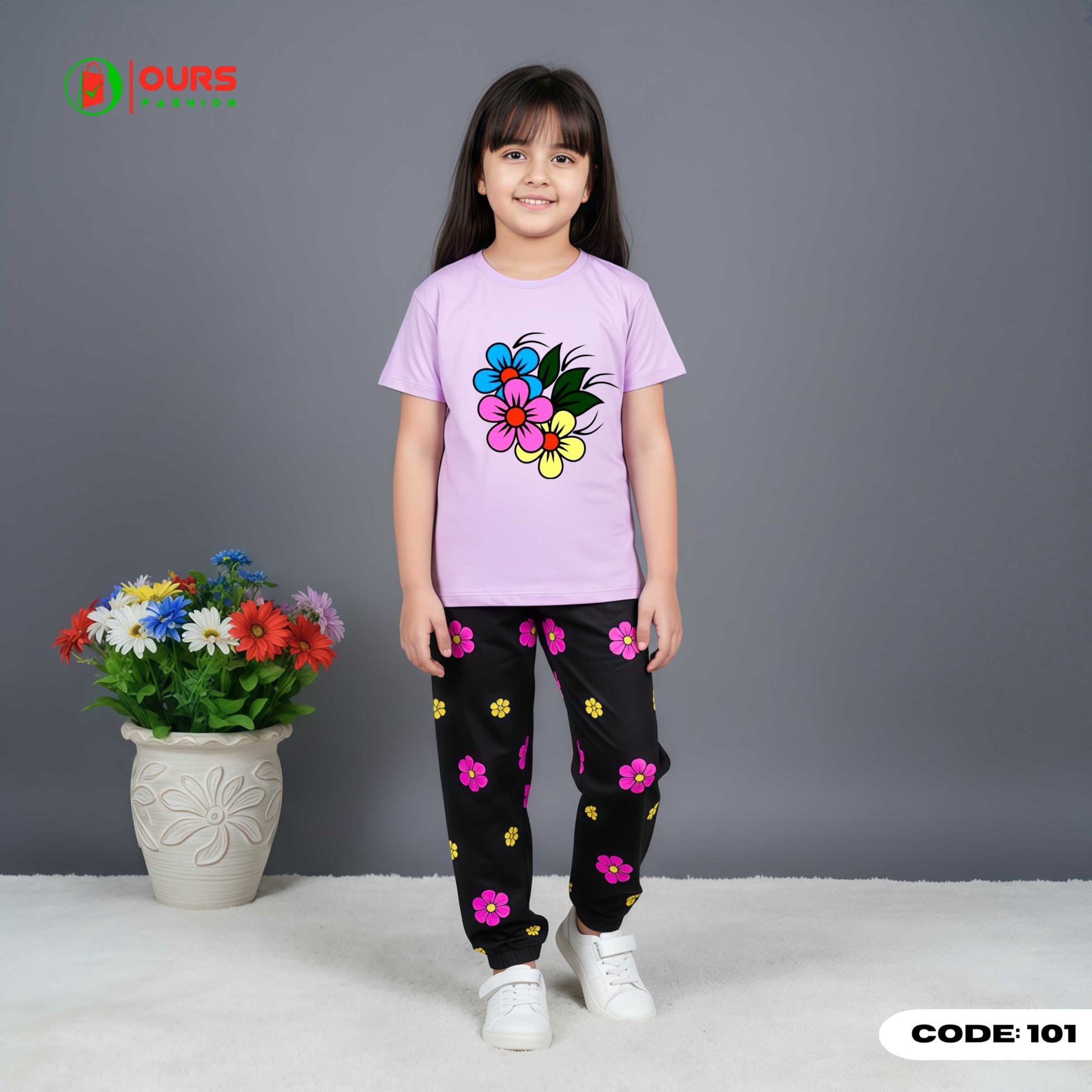 flower design half sleeve t-shirt + pant set.