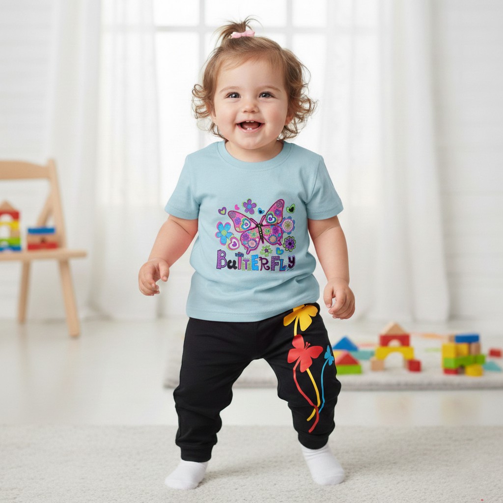 Butterfly design-half-sleeve-t-shirt-pant-set-