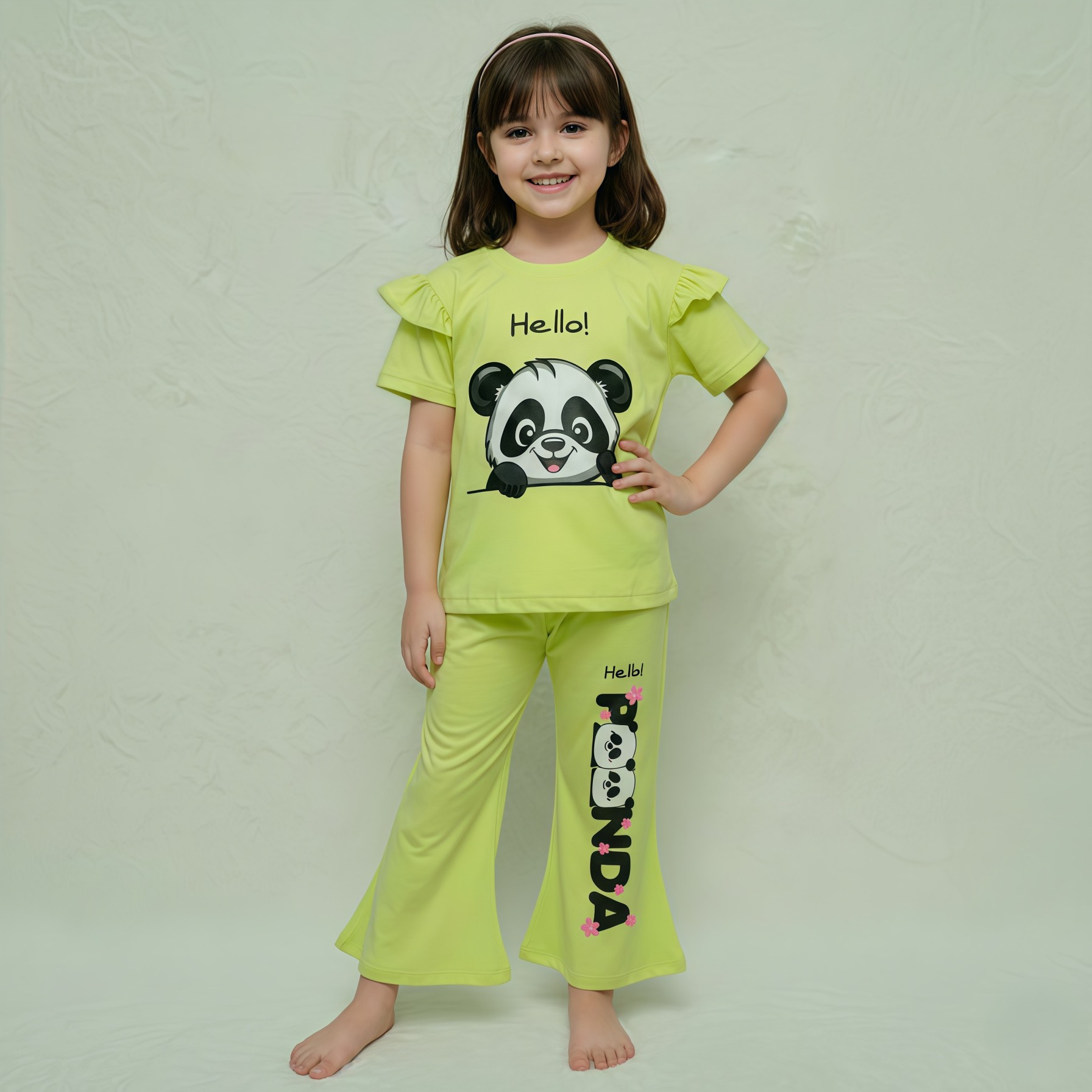 Lemon Colour Panda design-half-sleeve-t-shirt & Plazu-set.